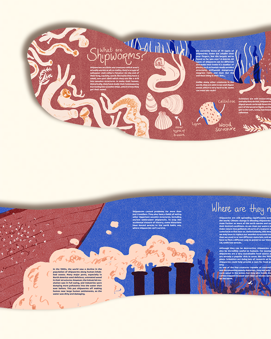 As a printmaker and paper construction(ist?), I like to make things that stretch me; six-foot concertinas, screen-printing comics and handbinding any graphic novel people will let me publish. I work with Rhi Fairclough at Inky Fruit Co. to make risograph-printed, handbound publications.